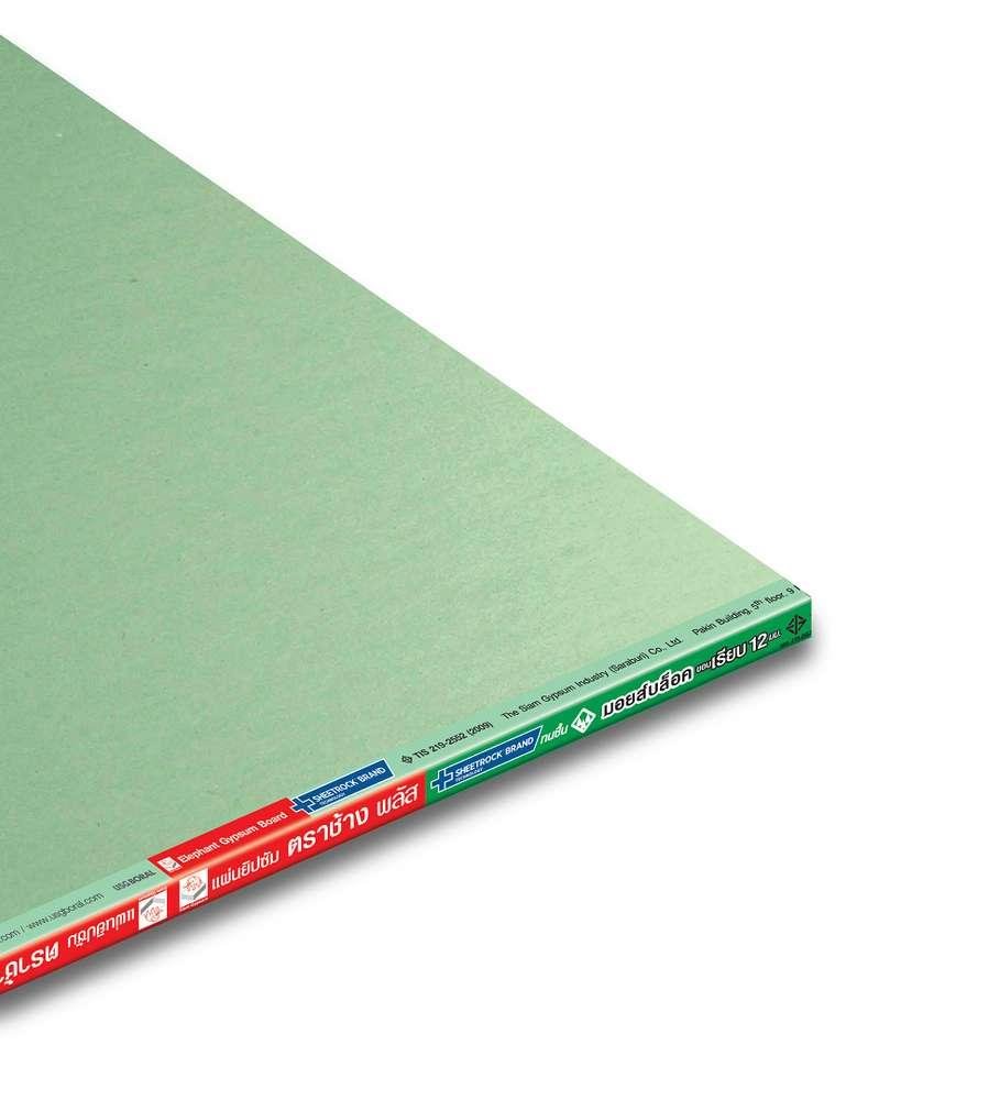 แผ่นยิปซัม ตราช้างพลัส ทนชื้น ขอบเรียบ 12 มม. 1200X2400 มอยส์บล็อค